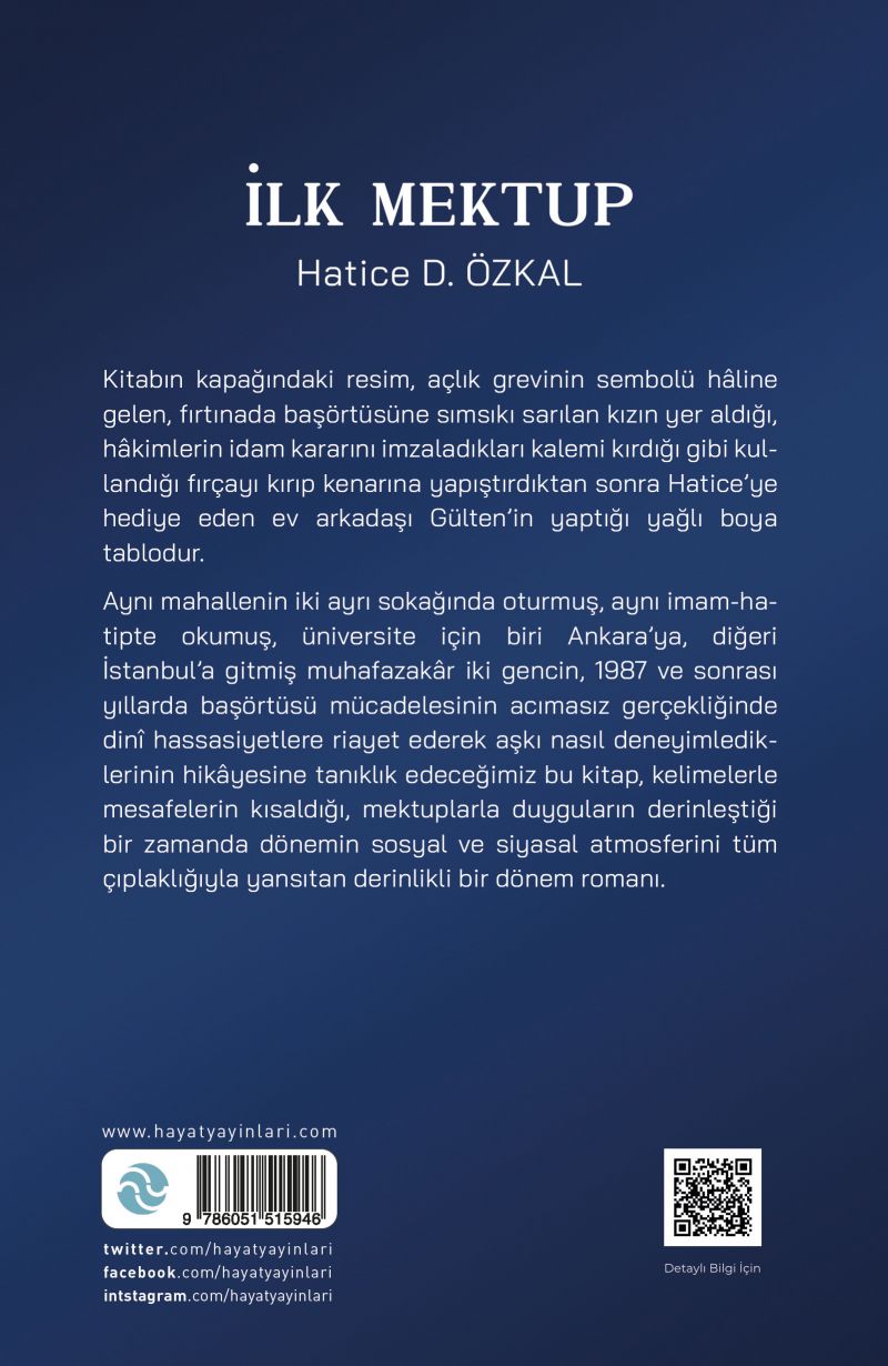 Aynı mahallenin iki ayrı sokağında oturmuş, aynı imam-hatipte okumuş, üniversite için biri Ankara’ya, diğeri İstanbul’a gitmiş muhafazakâr iki gencin, 1987 ve sonrası yıllarda başörtüsü mücadelesinin acımasız gerçekliğinde dinî hassasiyetlere riayet ederek aşkı nasıl deneyimlediklerinin hikâyesine tanıklık edeceğimiz bu kitap, kelimelerle mesafelerin kısaldığı, mektuplarla duyguların derinleştiği bir zamanda dönemin sosyal ve siyasal atmosferini tüm çıplaklığıyla yansıtan derinlikli bir dönem romanı.