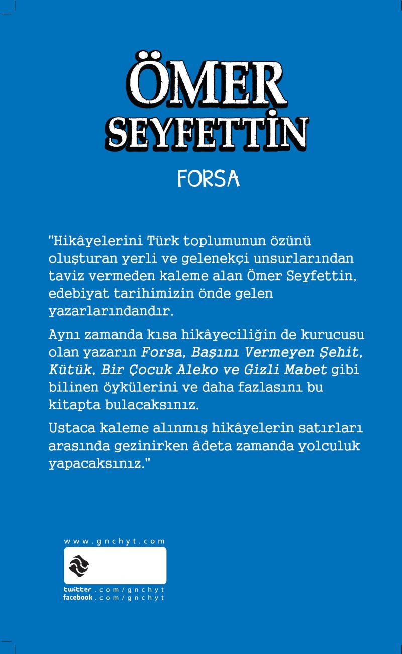 Aynı zamanda kısa hikâyeciliğin de kurucusu olan yazarın Forsa, Başını Vermeyen Şehit, Kütük, Bir Çocuk Aleko ve Gizli Mabet gibi bilinen öykülerini ve daha fazlasını bu kitapta bulacaksınız.